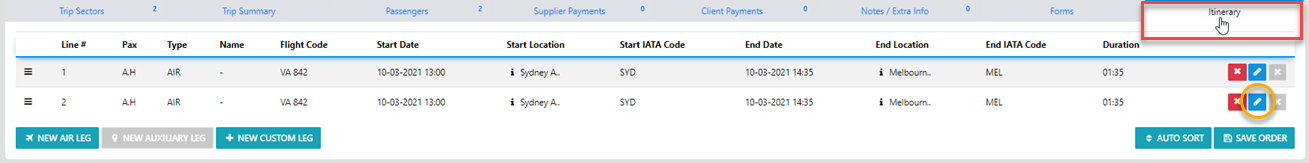All you need to do to achieve this is to Select the Itinerary TAB