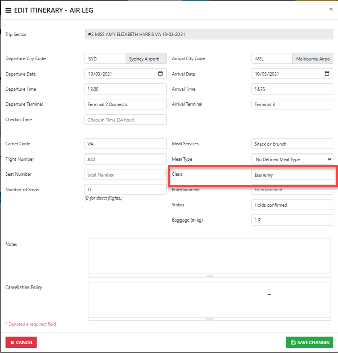 How do I change the Airline Class in an Air Sector