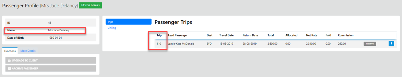Next - Drill Down to the Info related to the desired Pax and the trip or Trips which the Pax has travelled on will be displayed