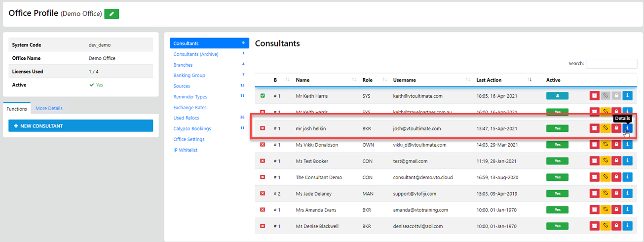 From the top Toolbar select ADMIN - My Office and a list of All users will display