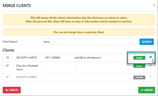 It's important to ALWAYS Merge the Profile with the Least number of trips and details into the Profile with the most