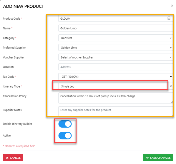 IF the product it to be included in Itineraries select the Itinerary Type