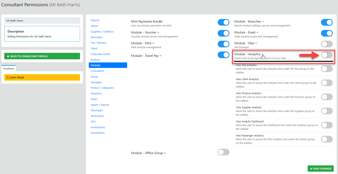 Now to turn on all or just selected elements of the Analytics suite select Modules
