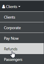 The Refunds option accessed from the sideBar under Clients allows you to process a Refund from the un-allocated funds displayed