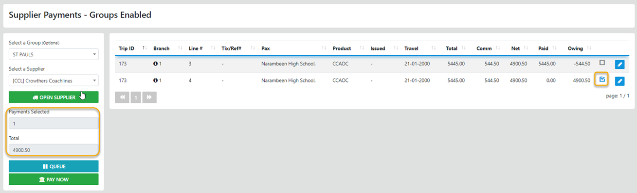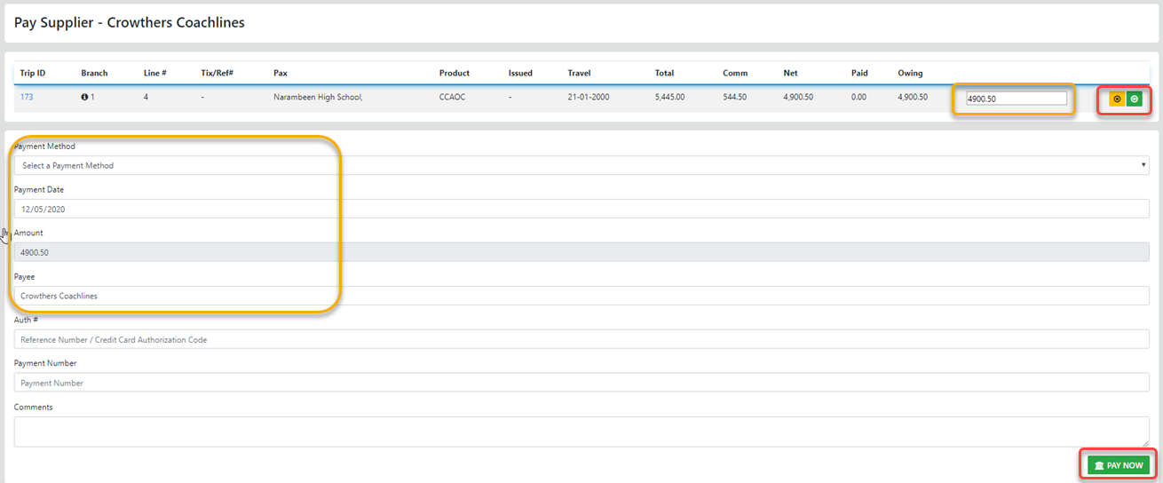 The Pay Now option accessed from the sideBar under Groups allows you to process full - partial payments OR a Mix of for the trip sector in one process