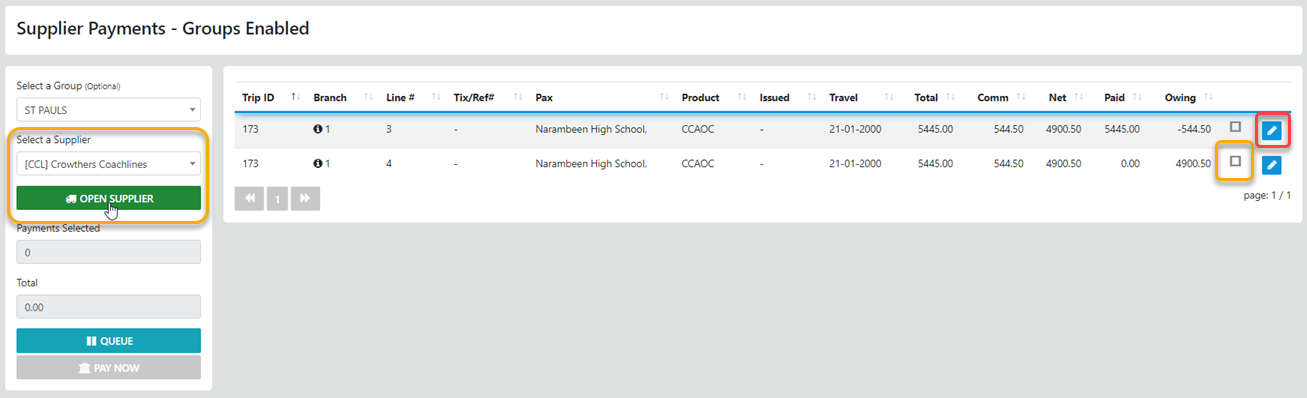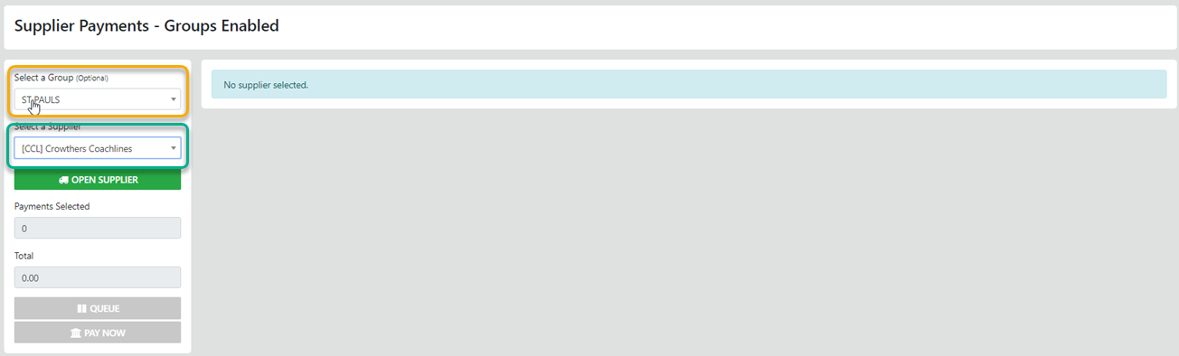 From the sideBar Select Supplier - Pay Now