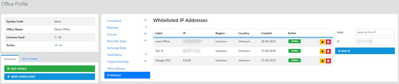 4. IF you have applied an IP address to the office you can apply additional IP addresses as required to allow individual consultants access from their home location