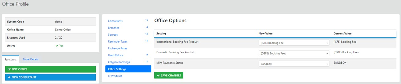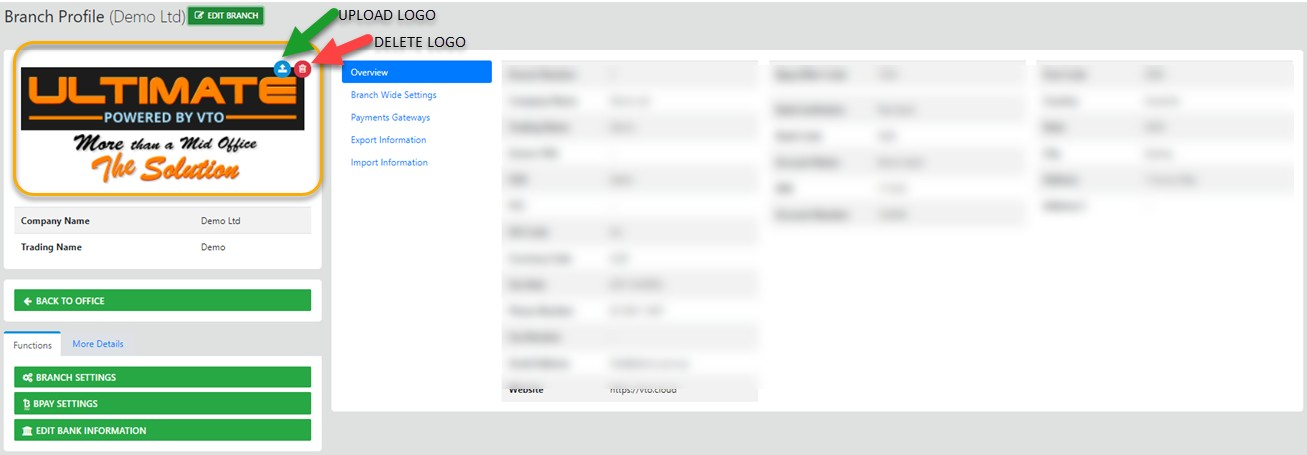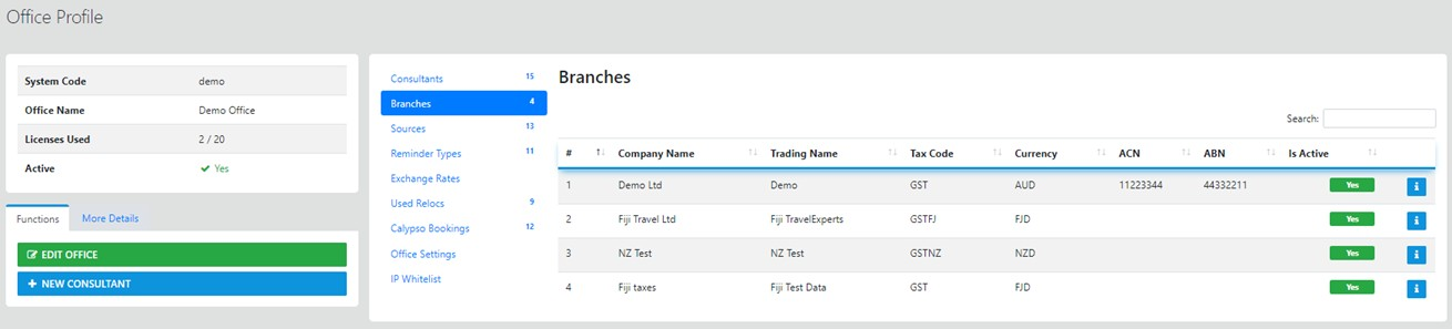This option allows updates to Office details, Branches (Multi Branch Required) Consultants and an upload facility for your office Logo