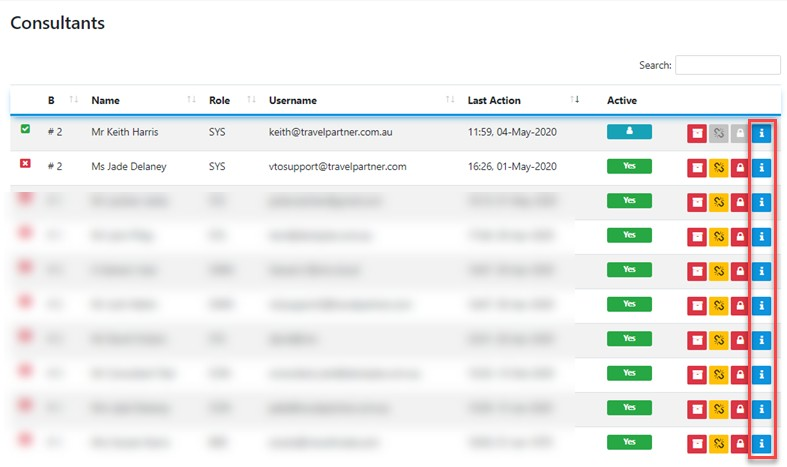 Under the Consultant Profile TAB you also have access to Clients managed by the Consultant, Trips associated with those Clients and Permissions related to the Consultant