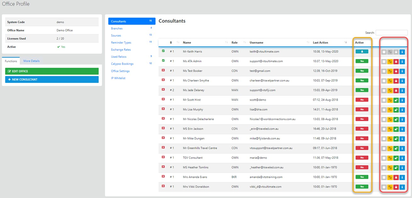 Allows the Administrator/Owner to update the Consultant details as required