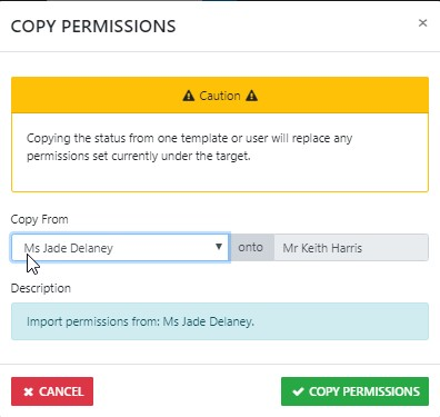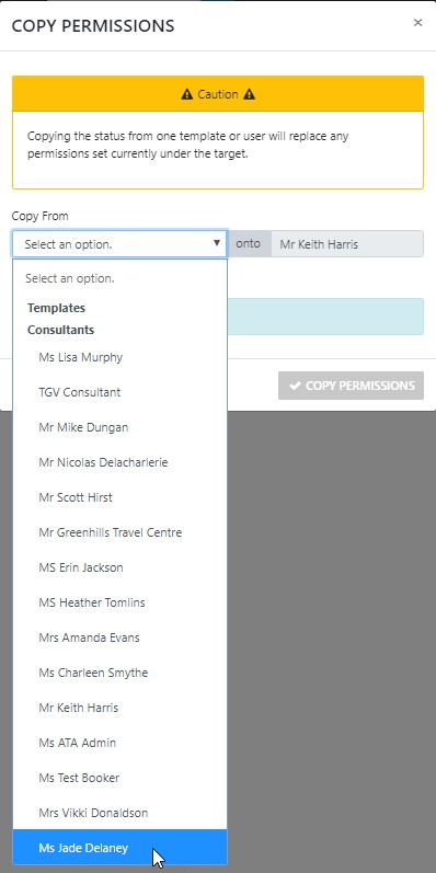 you can COPY the permissions for the selected Consultant from the permissions set for another Consultant