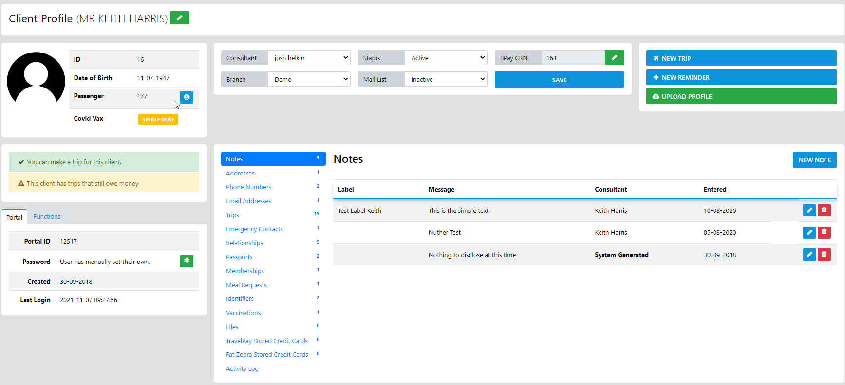 NEW Client Profiles both Leisure and Corporate can be created from the main dashboard or from inside the clients module