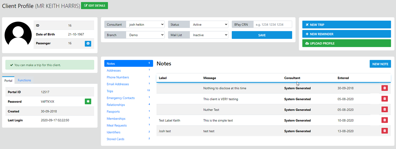 Client Notes - allows rapid access to notes for specific Consultants/Brokers / Administrators based on the user permissions