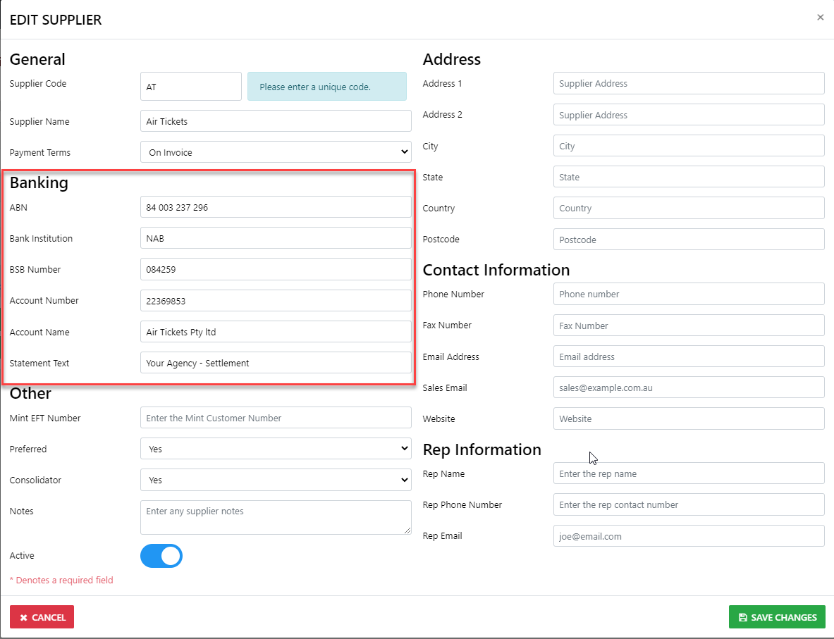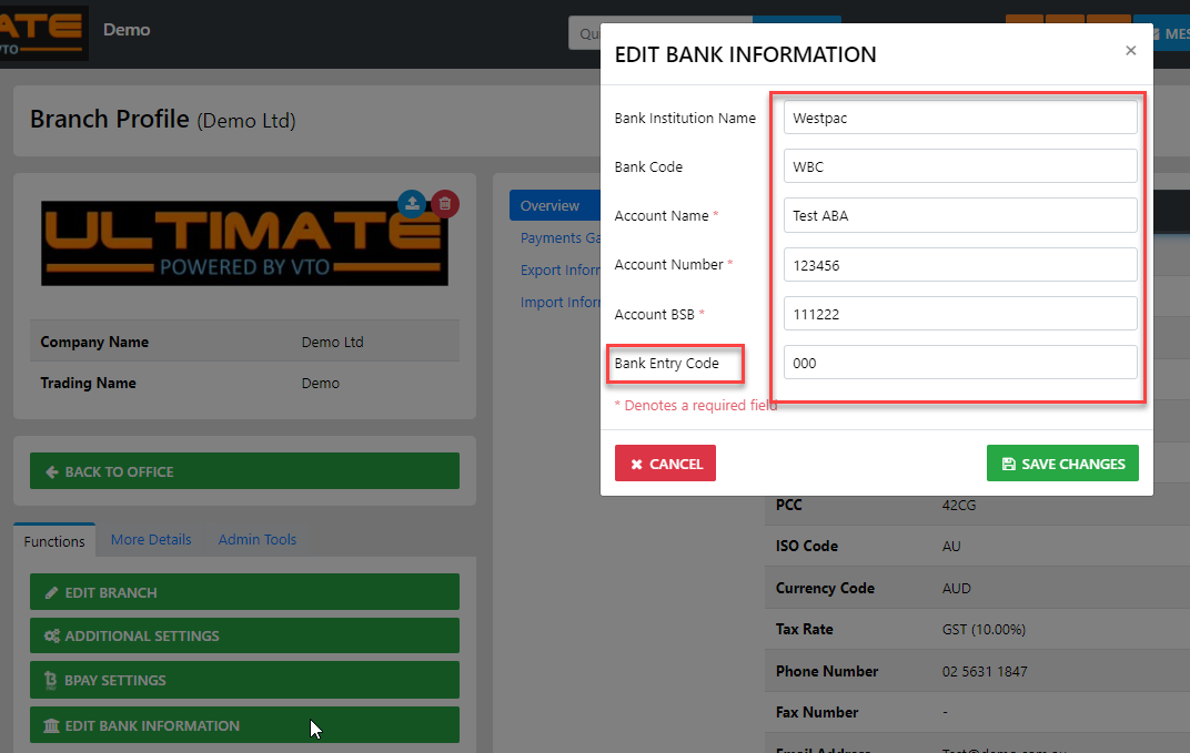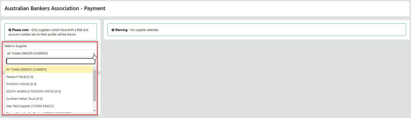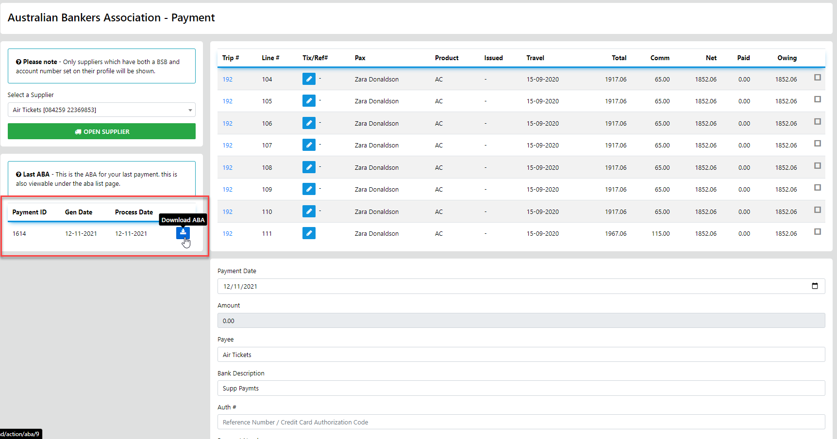 ABA (Australian Banking Association) Pay allows you to Process a Live Payment in Ultimate to your Supplier/s
