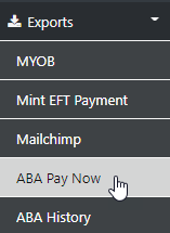 Let's start with selecting the Exports Option then Select ABA Pay Now
