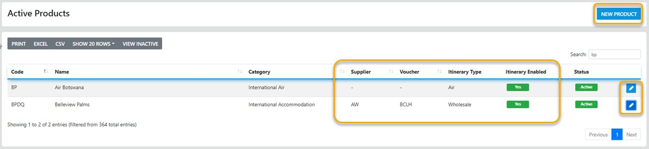 From the sideBar select Products - and the first page of system products/carrier codes will populate