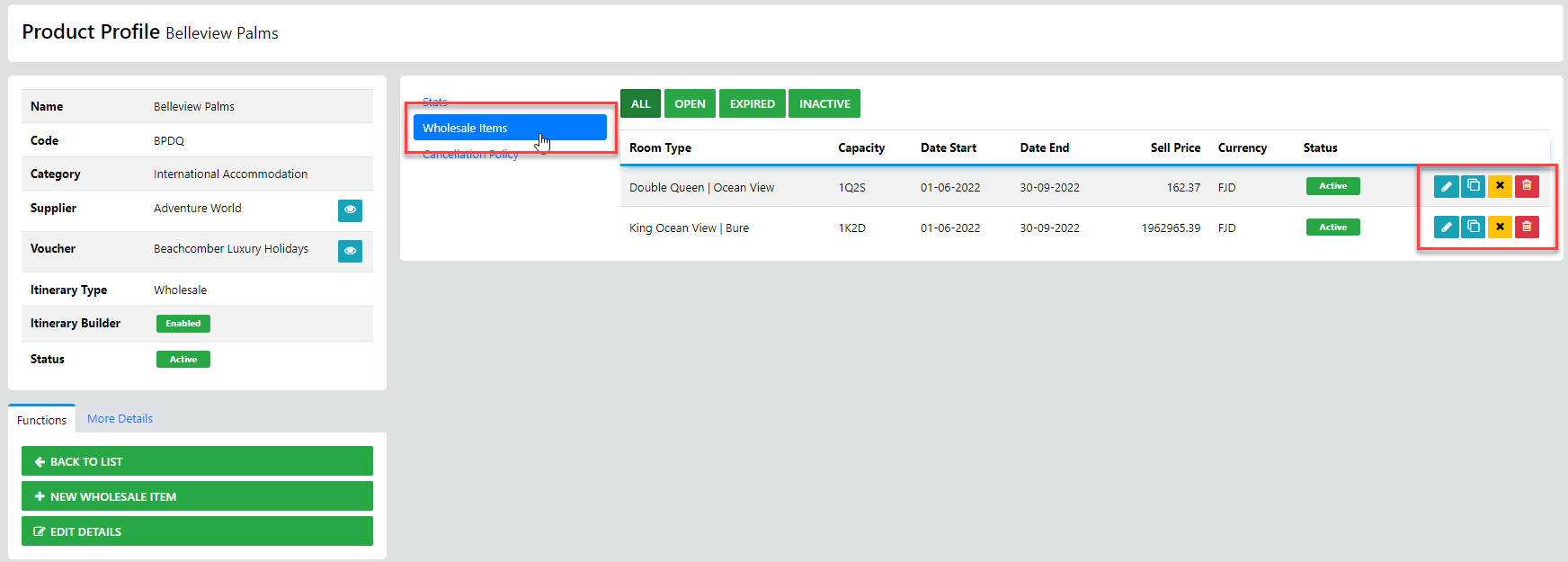 - From the Itinerary Type List Box select the type as Wholesale