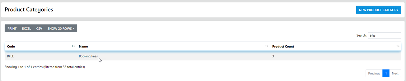 Product category Codes Are Created with the same parameters as Products, Suppliers or anything System wide where a Code is required e.g. Maximum 6 Characters Alpha or Numeric or Combined