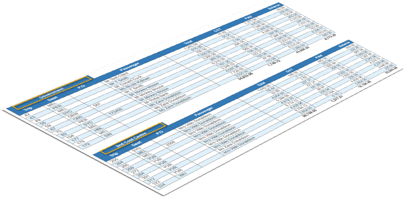 the Corporate Statement has been designed to clearly identify the Trip/Invoice # and all data is grouped by Cost Centre with sub and grand Totals applied