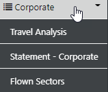 the sideBar  Corporate  Option allows access to the  Corporate Travel Analysis , Corporate Statements and Flown Sectors Analysis