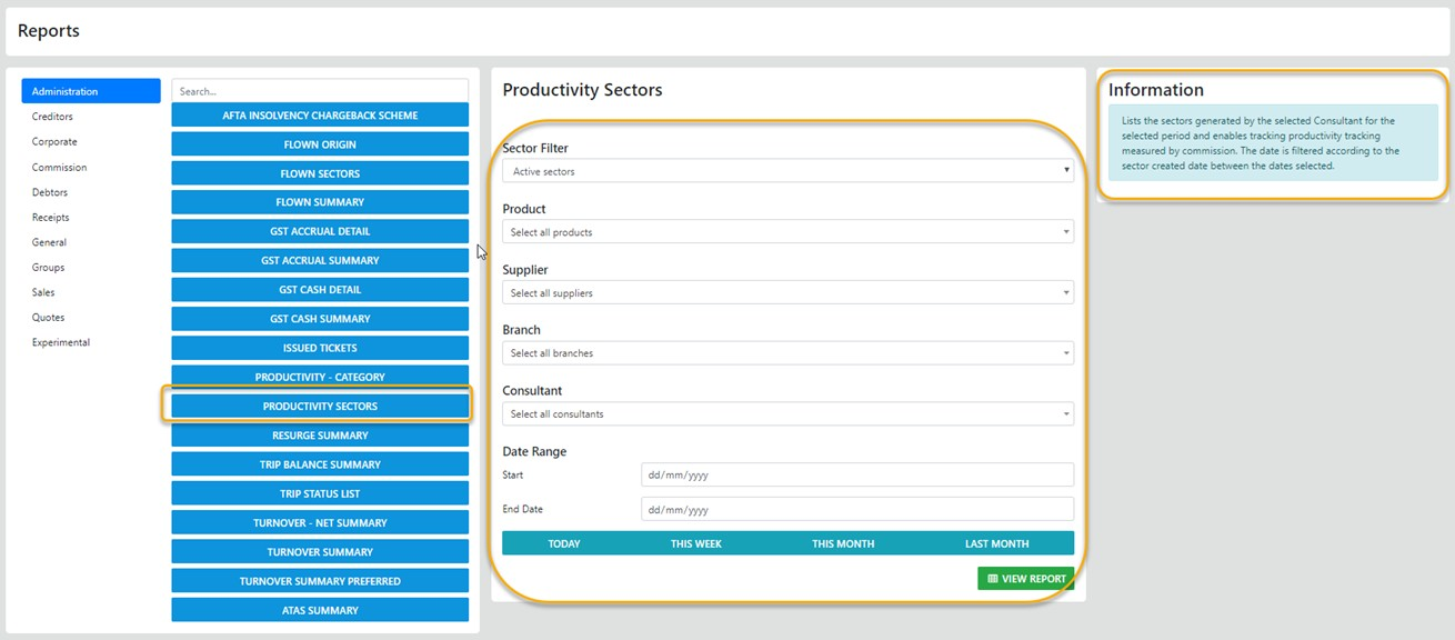 Broker or Home Based Consultants are limited to reports which only display data relating to Trips created by the logged in Consultant.