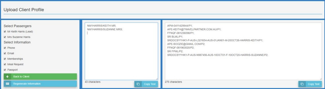 Next - Select Copy Text in the Pax Name Box (to copy all pax names otherwise delete the non required names) THEN return to the open PNR in the Selling Platform and select "CTRL V" to insert the data into the PNR