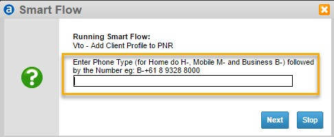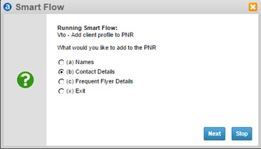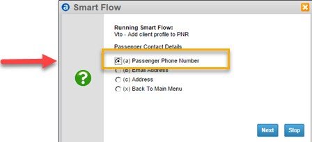 Vto - Add Contact information to the PNR select Contact Details ... Then Select your desired option