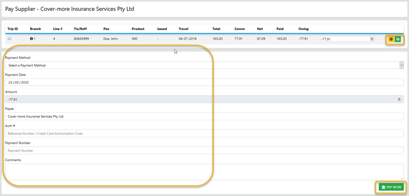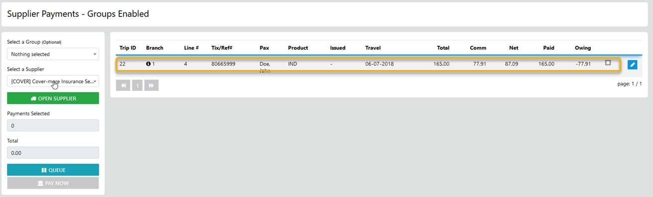 Receipting funds from a Supplier is a simple as selecting the line item displaying a negative value the select the method applicable and the value of your selection will display as a negative amount