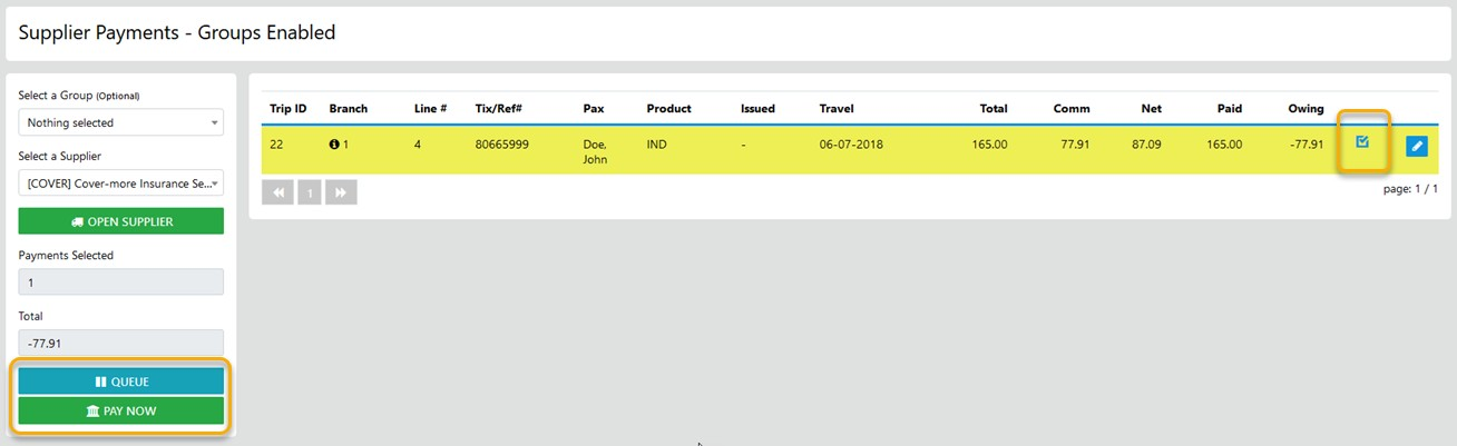 Next - you may choose to Que the payment for later processing by selecting the Option