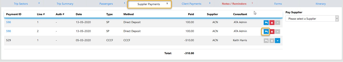If you made an error when making a Supplier Payment e.g. included a sector you should not have or missed a sector then Reverse the whole payment and reprocess it