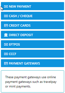 Direct Deposit | this is used to receipt payments where the client has deposited funds into your account |