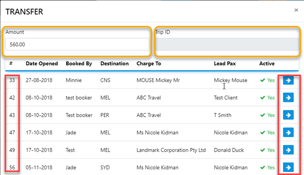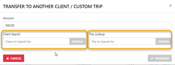 by selecting the reveal option a list of the trips for the client will display allowing for you to transfer the funds to the desired trip