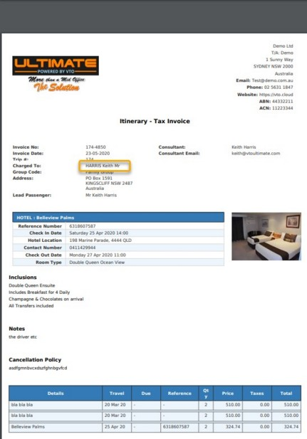 Tax Invoice Itinerary