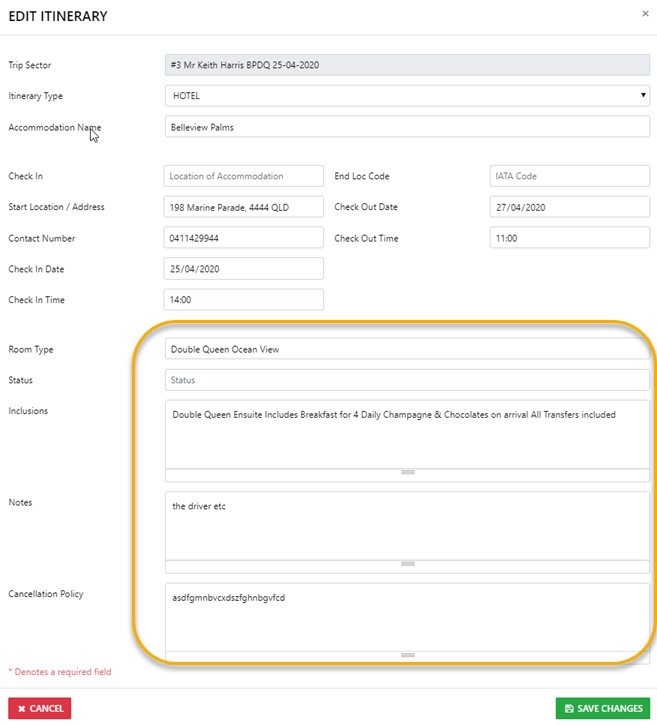 ![]() | To edit detail contained in the Itinerary for the sector select the edit icon |