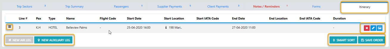 Select the Itinerary TAB to view and re-order Itinerised sectors