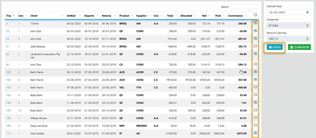 When you return to the module the line items selected previously but did not process will be automatically preselected ready for processing