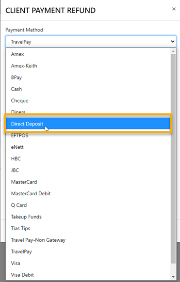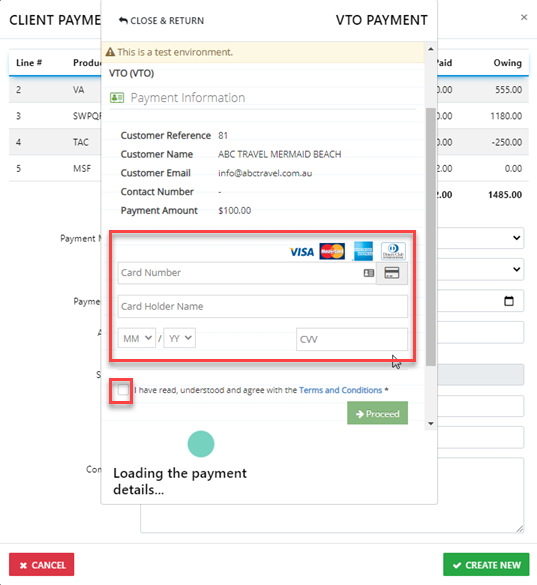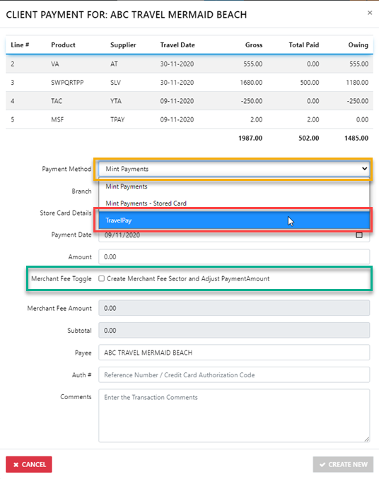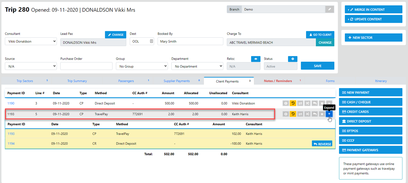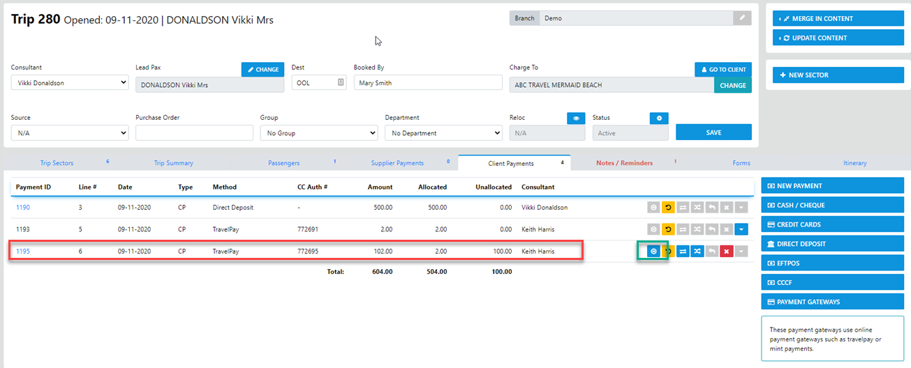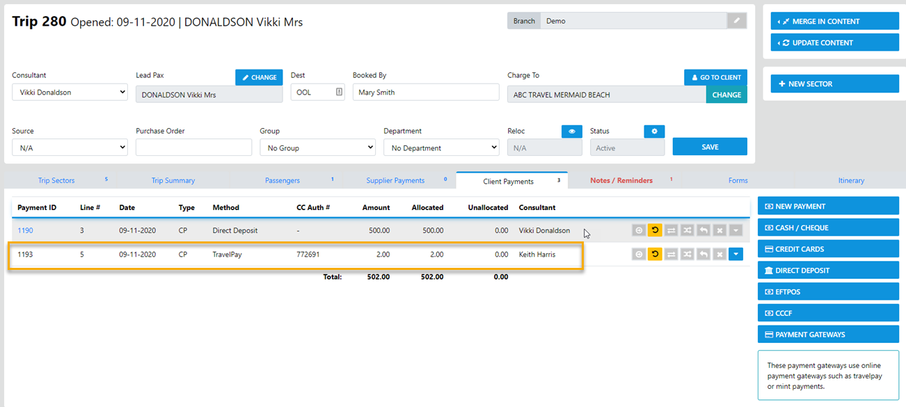 “Payment Gateways” – This method can be used to receipt payments from the client in the trip which is a Live  payment using the Client credit card details