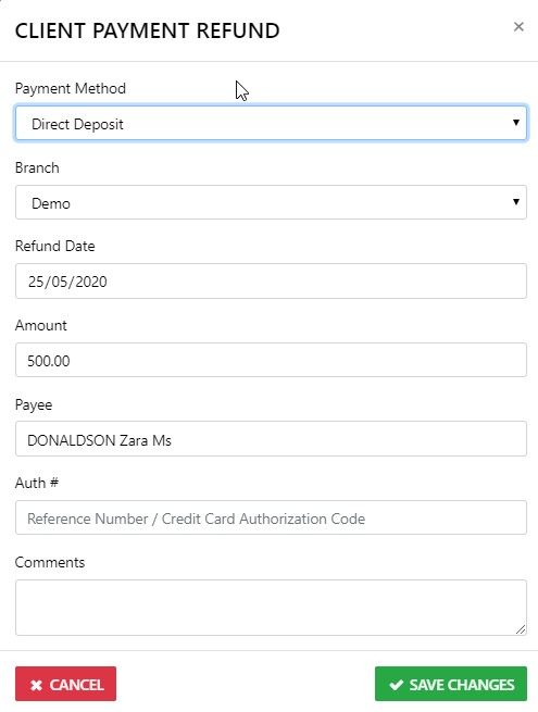 Refunds in this module should ONLY be used to refund money to a Client (it has nothing to do with a Refund you may have received from a Supplier)