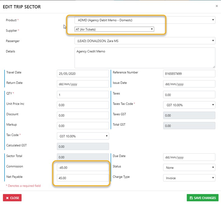 ADDING an ADM to an existing Trip is no different to adding a "New Sector" in a Trip