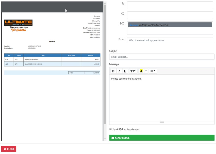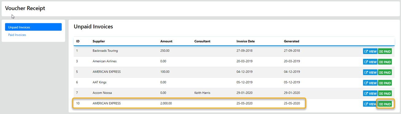 Select View to view the original invoice - Select Paid to mark the select Item/s as paid - the paid items will now be included in the bank Reconciliation list