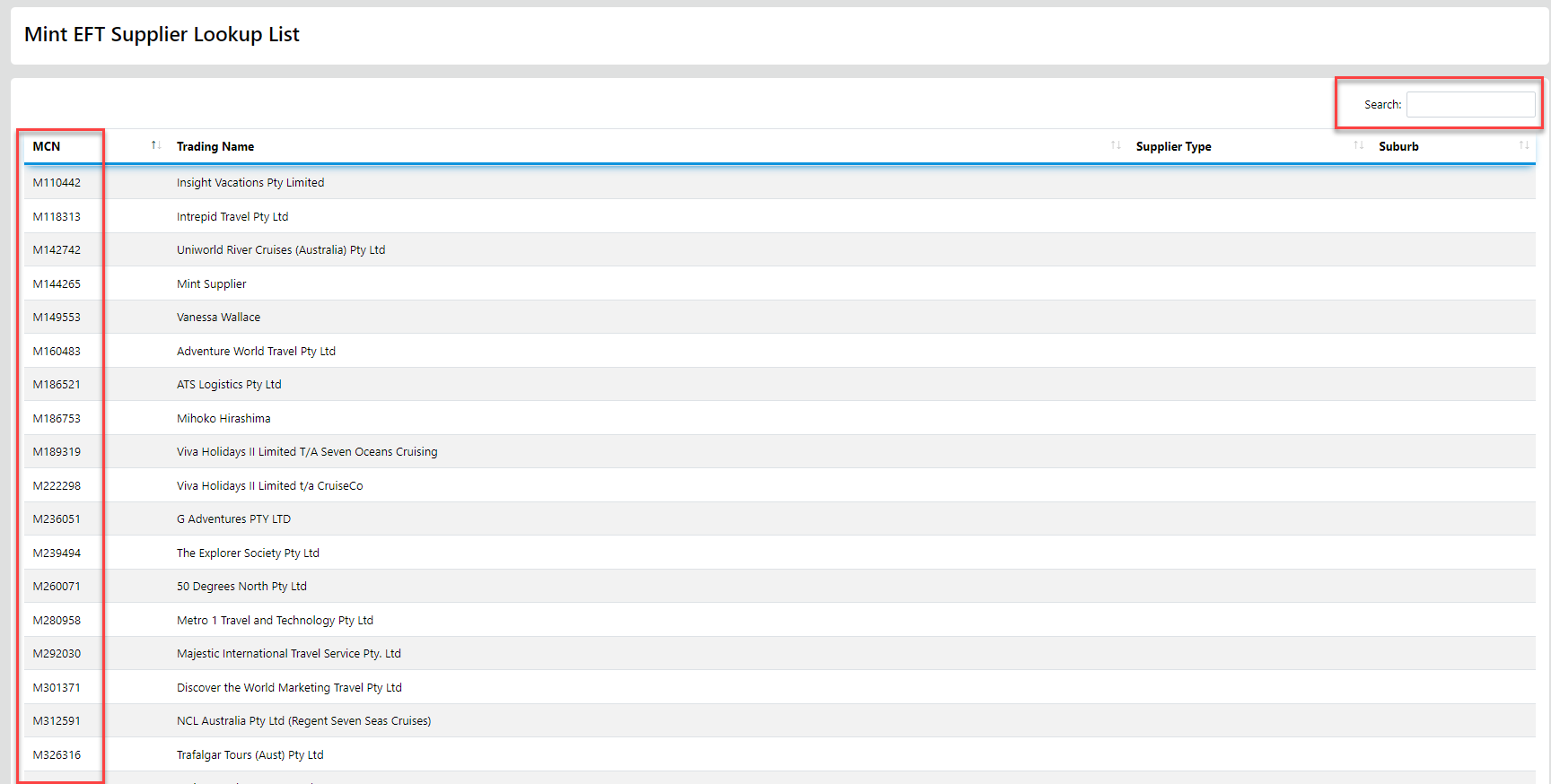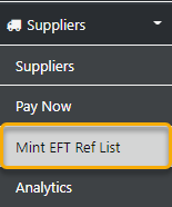 Step 1. - you need to familiarise yourself with the location of the Suppliers currently using the MintEFT process, this list includes the critical MCN number which must be added to the Supplier Profile for any Suppliers you want to settle with using this method of payment.