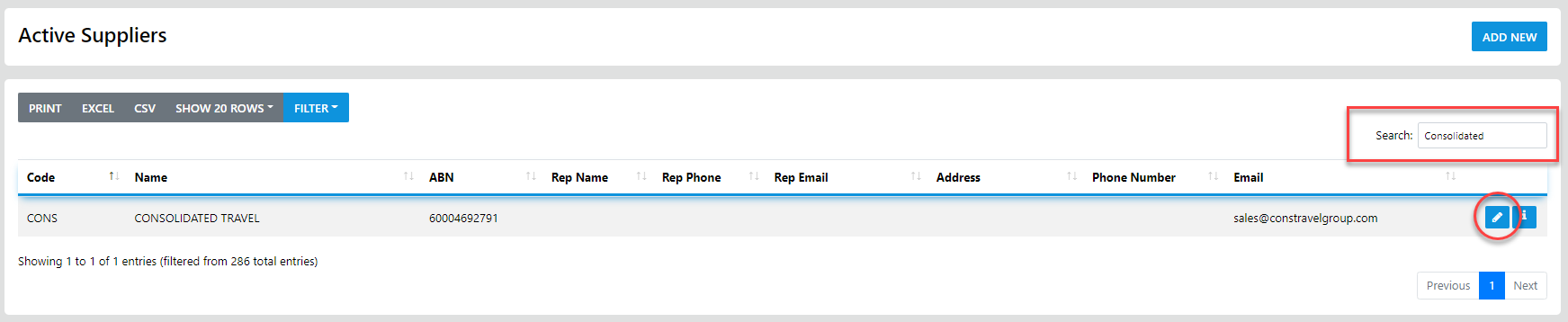 and from here just search for the desired supplier and drill down into the profile via the EDIT option