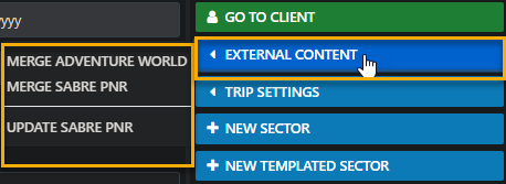 The trip dashboard options for Merge and Update PNR's and the like have been grouped under the External Content Option