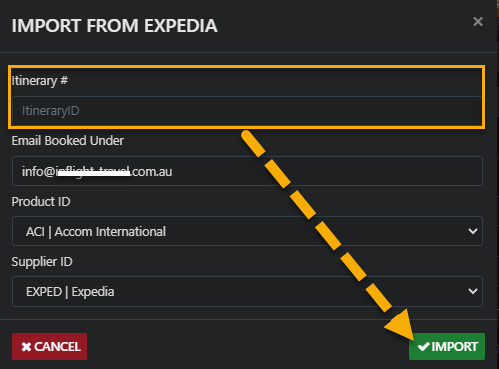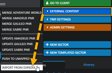 THEN select Import from Expedia