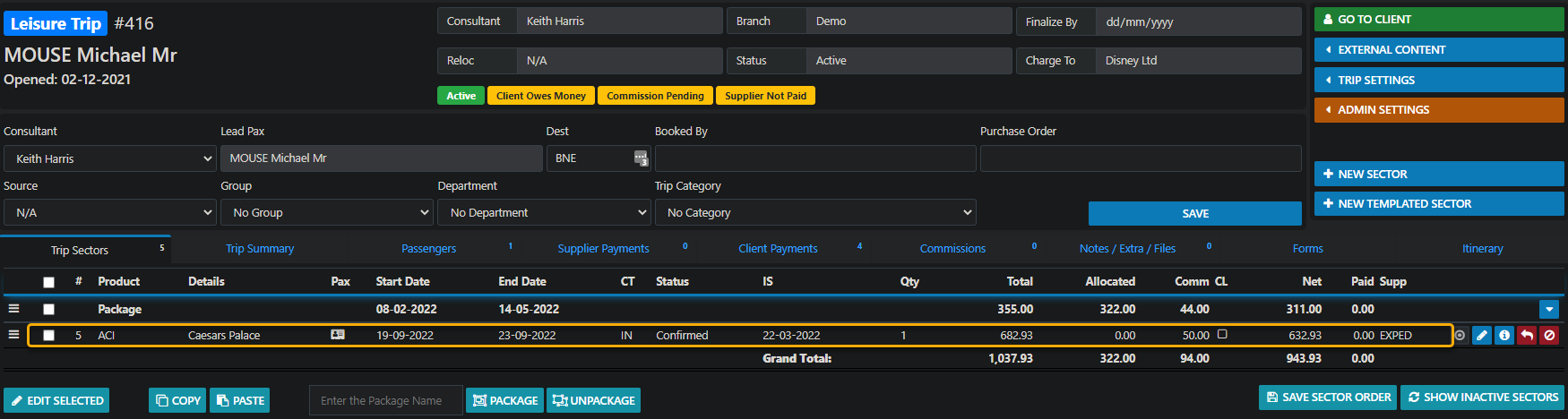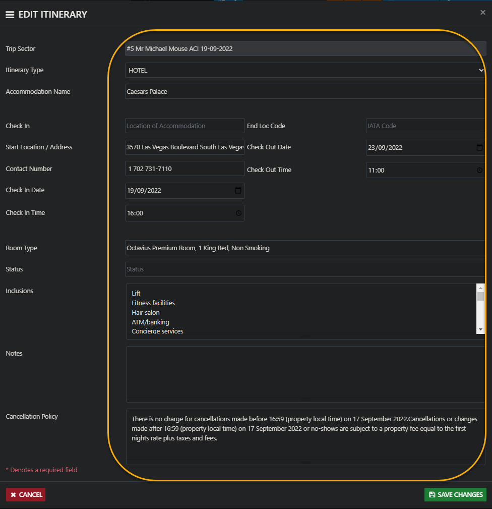 then check the Itinerary TAB for the Itinerary details and modify if required