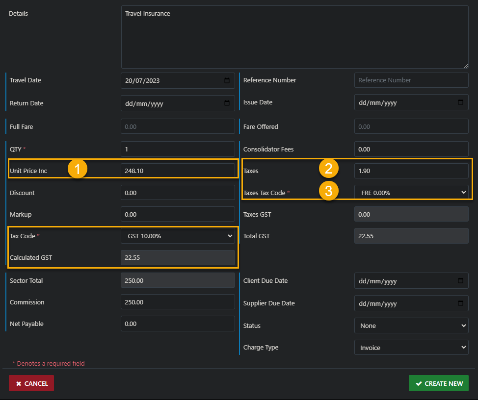 Where the need arises to adjust the GST value in VTO to match that which is charged by your supplier for example your Travel Insurance providor, you'll note that the Insurance document declares in very small print what the Stamp Duty value is for which GST is NOT applicable.